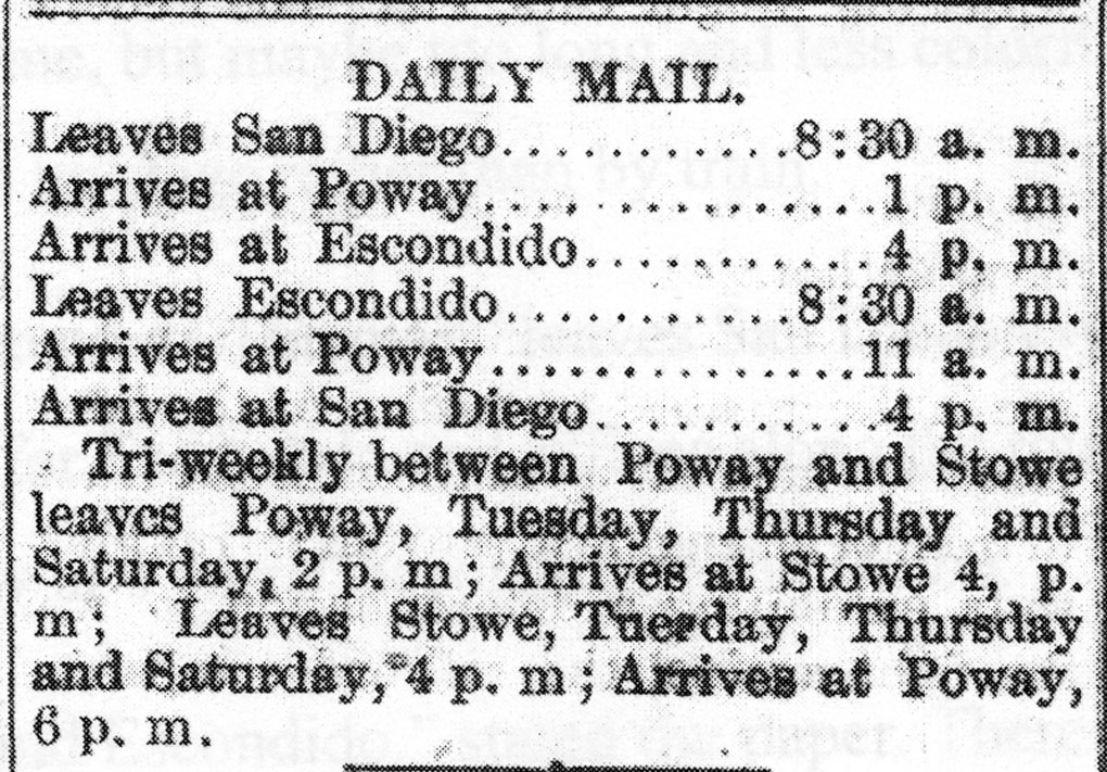 Sources for this post included historic San Diego newspapers, the National Archives of the United States, and the archives of the Escondido History Center and the San Marcos Historical Society.