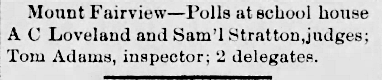 Mount Fairview, a community on the San Luis Rey River between Oceanside and Pala, was enough of a settlement that it was the location of a polling place for an 1894 election, as shown in the notice below from the Escondido Times issue of August 2, 1894: